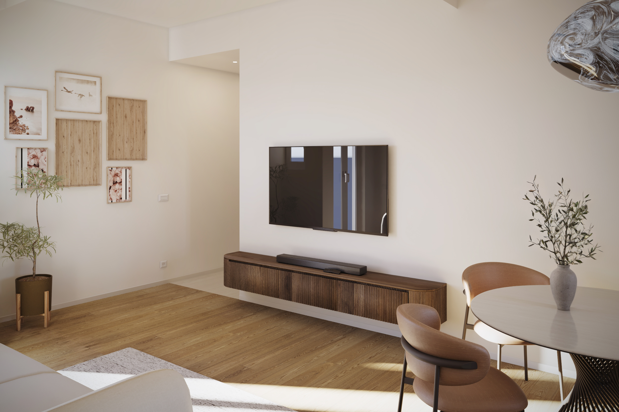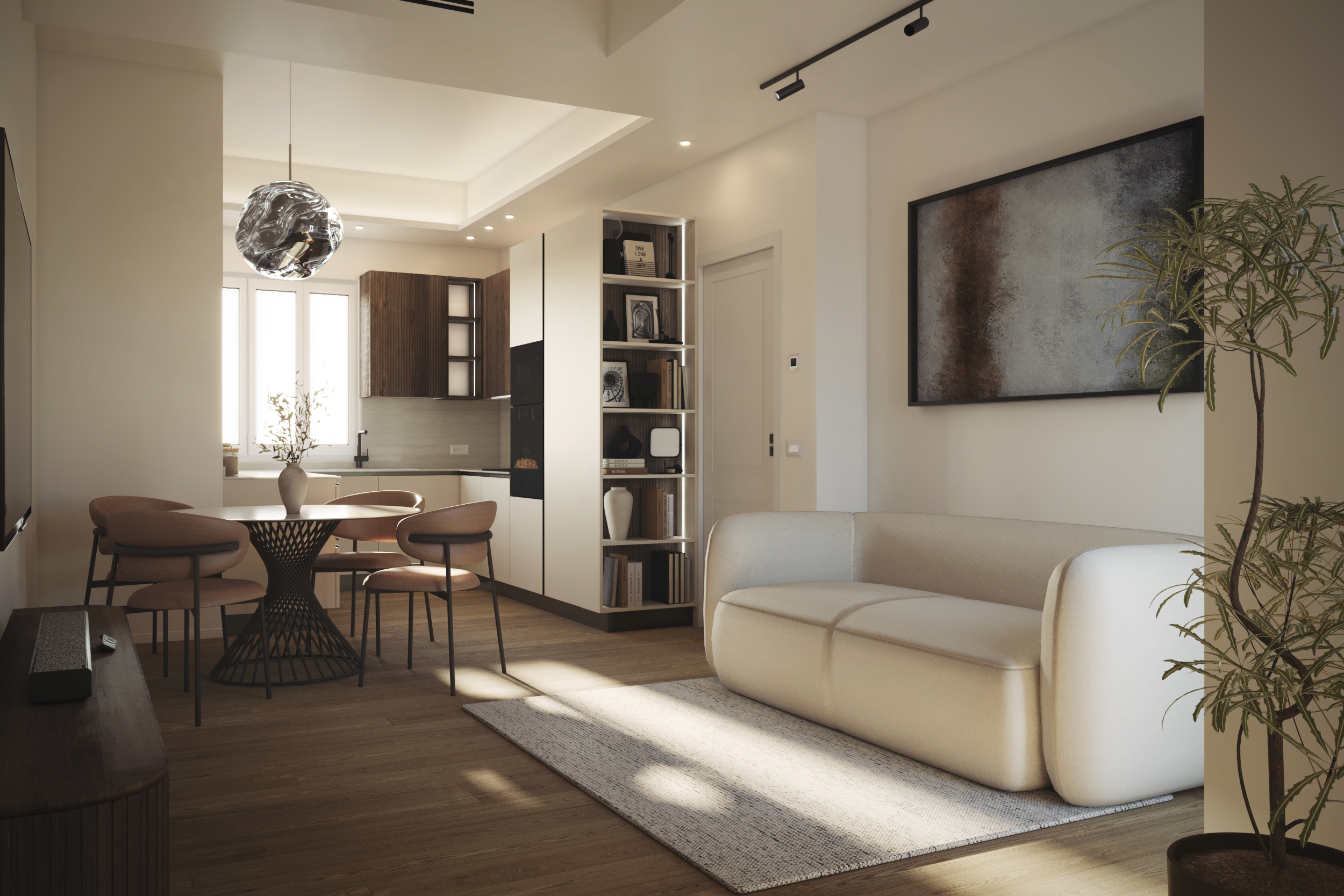 • Living con cucina a giorno con doppia esposizione;
